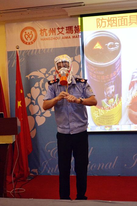 在讲座中,消防培训中心高级教员高教官首先结合近年来国内几起特重大火灾案例,通过触目惊心的火灾现场图片和视频,向大家阐明了火灾的重大危害。然后,就火灾预防、灭火知识以及现场逃生等方面的消防安全知识给大家做了详细的讲解,其中重点讲解了公共场所逃生的技巧。最后,向大家介绍了灭火器、逃生绳、防烟面具以及多功能安全锤的功能和使用方法,并现场指导大家使用和演习,并对在场人员提出的问题进行了现场解答,与大家形成互动,以便于所有人能够很轻松的理解和领会。